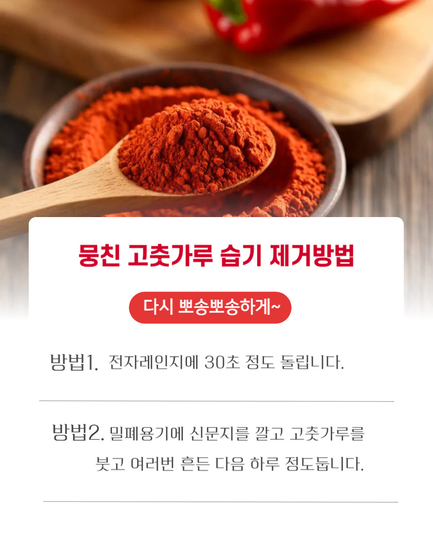 분쇄된 고춧가루를 건조하여 수분을 제거